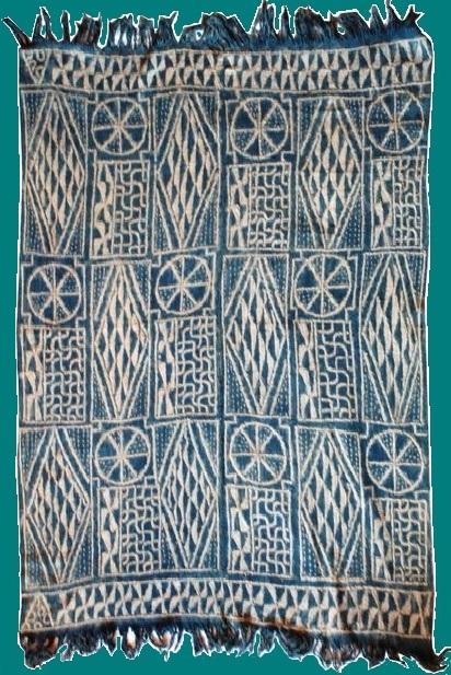 Voici ci-dessous un tapis NDOP traditionnel, une tunique "boubou ndop" et un tabouret aux motifs rappelant le Ndop, photographié dans une ancienne maison à Bamena :